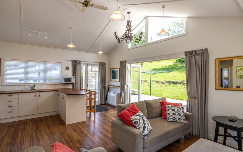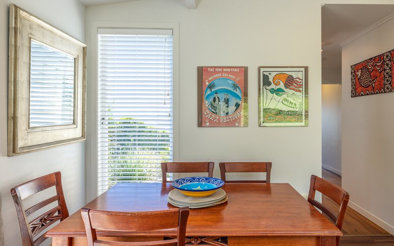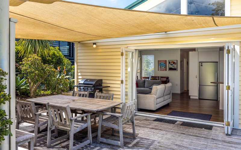 It’s also within easy walking distance of Oneroa Village, where you’ll find shops, restaurants, bars, art galleries and entertainment including the arts theatre and movie cinema. Visit a variety of local eateries just a 1-minute stroll away or self-cater memorable family meals on your private patio with a BBQ grill and seating for 16. With convenient access to Oneroa Beach and Little Oneroa Beach, buses, Four Square supermarket and ATMs, everything you need for a fun and relaxing island holiday is right at your doorstep. “A Bach” is the ideal Waiheke accommodation for groups of up to 8.