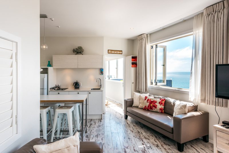 Fully refurbished with bespoke design, Oneroa Central has all the modern comforts. The luxurious bathroom has a freestanding tub, walk-in shower and heated floors. A well-equipped kitchen offers high-end fittings, including a solid granite work top. The bedrooms are spacious, two with Queen beds and sea views: a third bedroom is also available with twin beds.