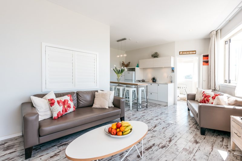 Looking for a Waiheke accommodation with an unbeatably central location, sea views and proximity to the beach? You’ve come to the right place. Boasting stunning views over Oneroa Bay and the Hauraki Gulf, this gem is situated in the heart of bustling Oneroa Village, above Ocean View Cafe. The long, golden sands of Oneroa beach lie a mere 100 metres away and many of Waiheke’s most popular restaurants and entertainment venues are literally at hand. This 3-bedroom holiday rental offers the perfect vantage point for making the most of all that Waiheke has to offer.