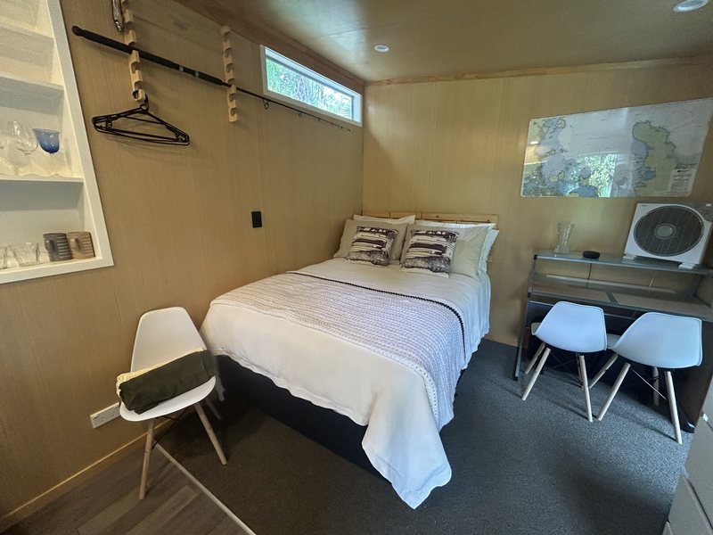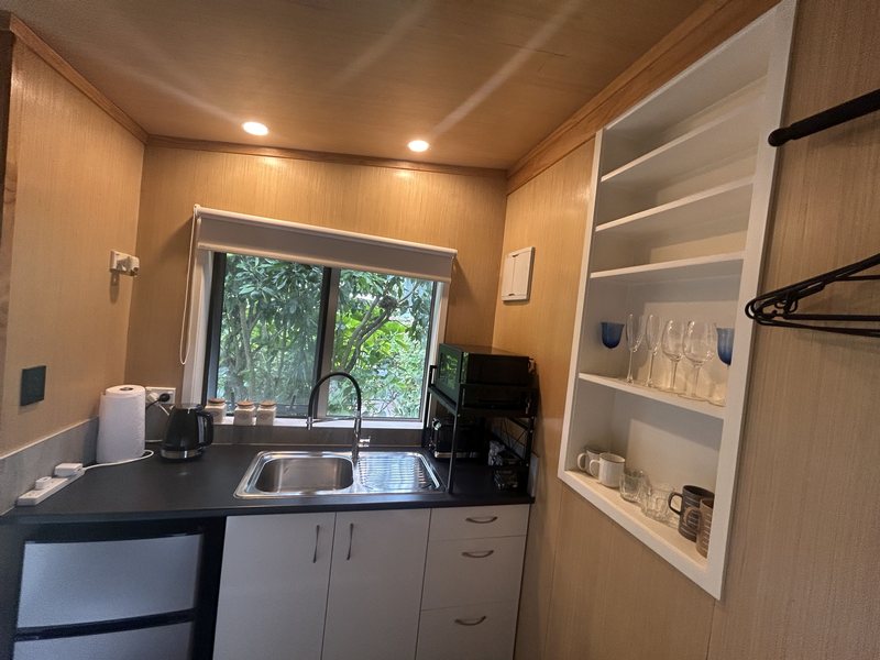 Oasis Hideaway has all that you need in a well-designed space. The bedroom has a comfortable Queen bed and opens out to the garden. The bathroom is well appointed with shower, vanity and mirror, toilet and heated towel rail. The kitchenette has a microwave, fridge freezer, toaster and kettle. The private deck offers sanctuary and sun in an oasis of calm that makes you feel a world away.